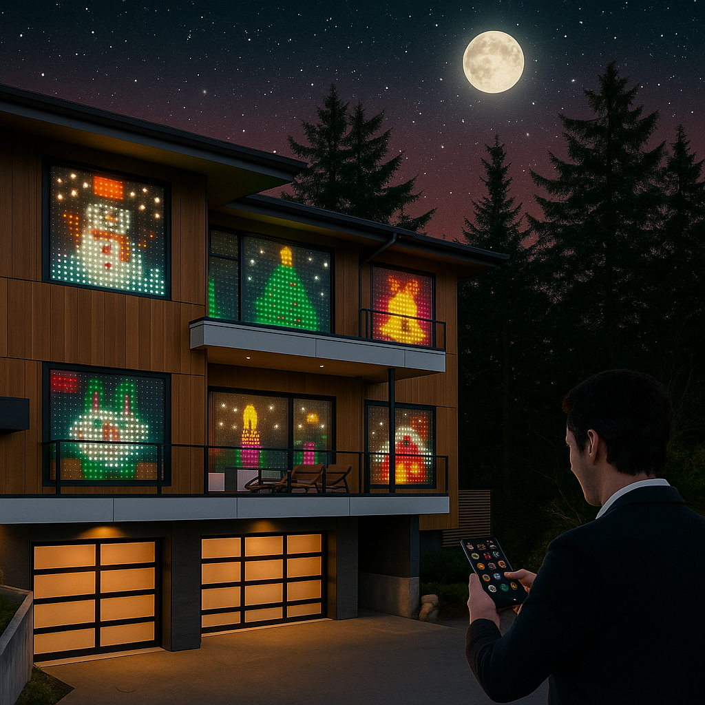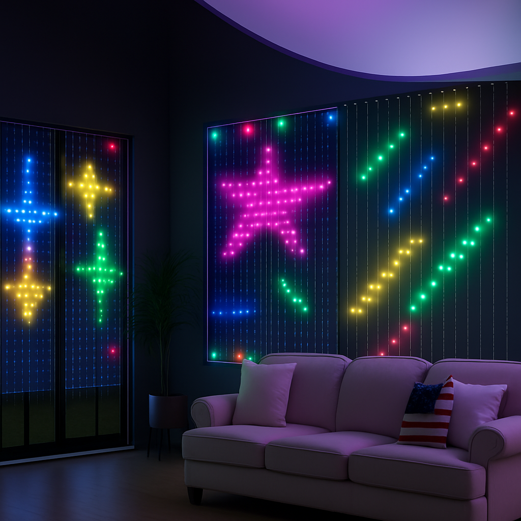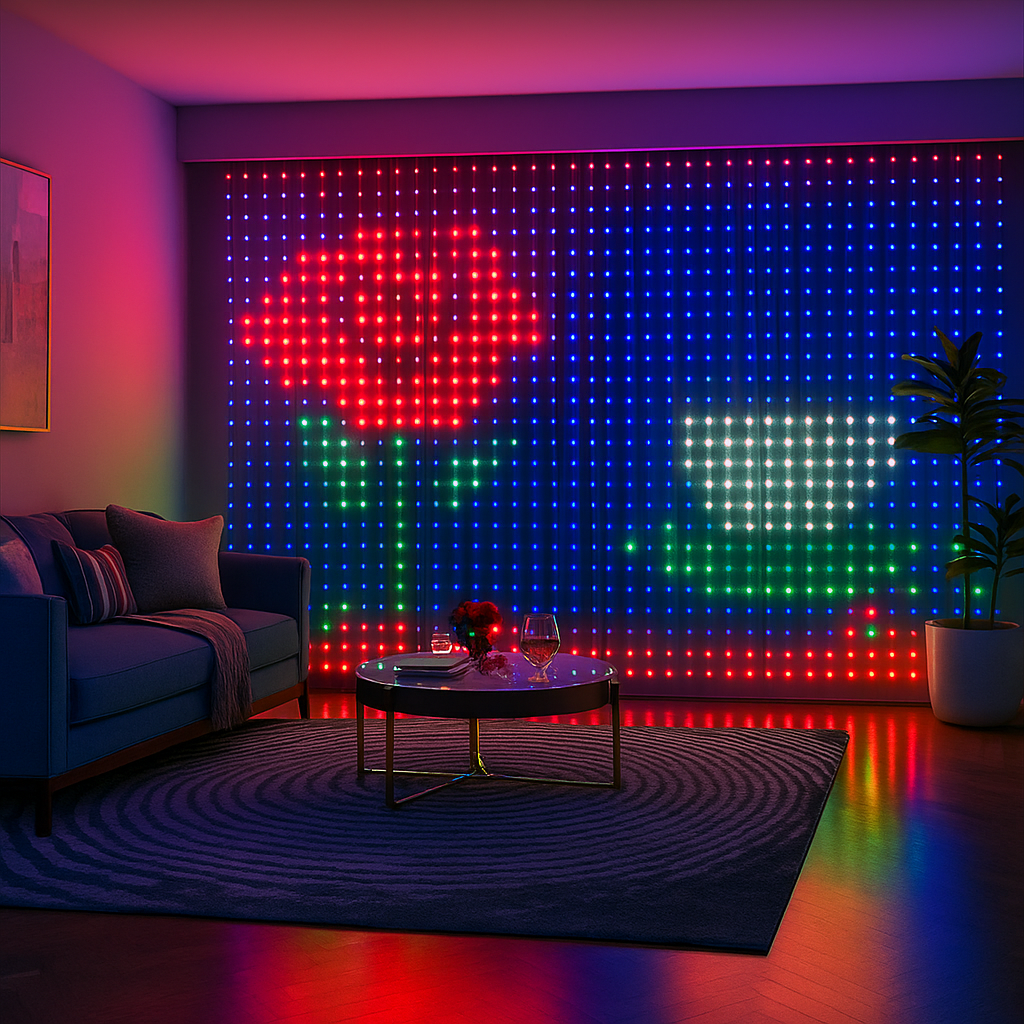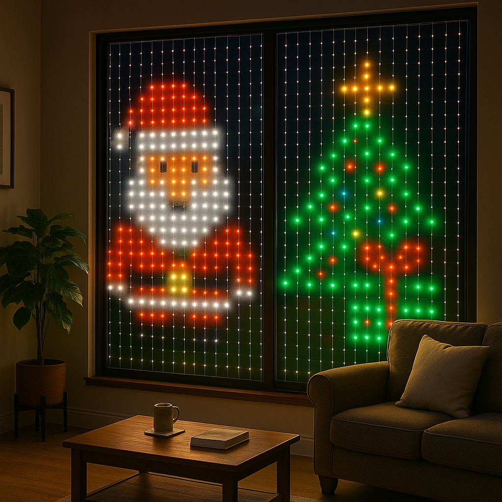 Rozświetl swoje wnętrze tysiącem kolorów i zanurz się w świątecznej aurze z GlowMas™ – inteligentną kurtyną LED, która łączy technologię, kreatywność i emocje. Idealna do pokoju, salonu, witryny sklepowej lub tarasu – w kilka sekund zamienia zwykłą przestrzeń w magiczną scenerię świąt. GlowMas™ to nie tylko lampki – to Twoje świetlne płótno!